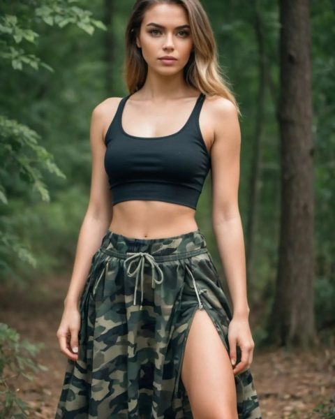 Our A-line camo skirt is a hit! Ankle length wit a slit with a elastic.