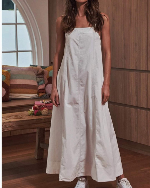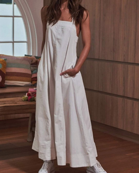 Step into a carefree style with ou Delilah, linen, ankle length open back dress featuring elasticated straps. Perfect for any sunny day adventure. Available in soft khaki and milk.